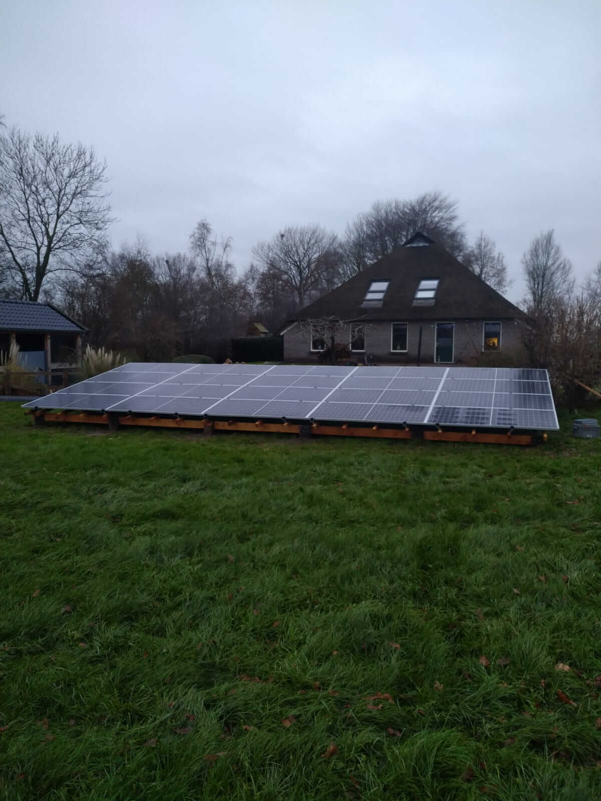 Dit project bij een particuliere klant omvat een veldopstelling van zonnepanelen waarbij 40 panelen werden geplaatst, en nog eens 20 werden geïnstalleerd op het schuurtje. Een creatieve oplossing bij beperkte ruimte.